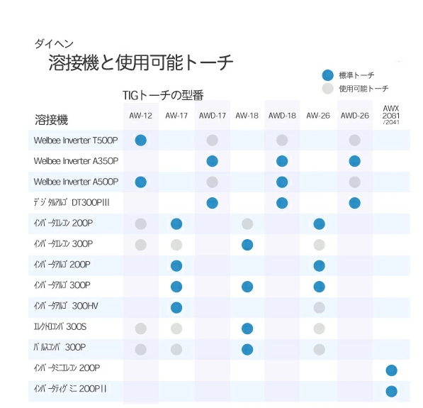 TIG溶接機 インバータエレコン200P(AVP-200)やインバータアルゴ200P(VRTP-200)、インバータアルゴ300P(VRTP-300)、インバータアルゴ300HV(VRTPH-300)で使用可能です。