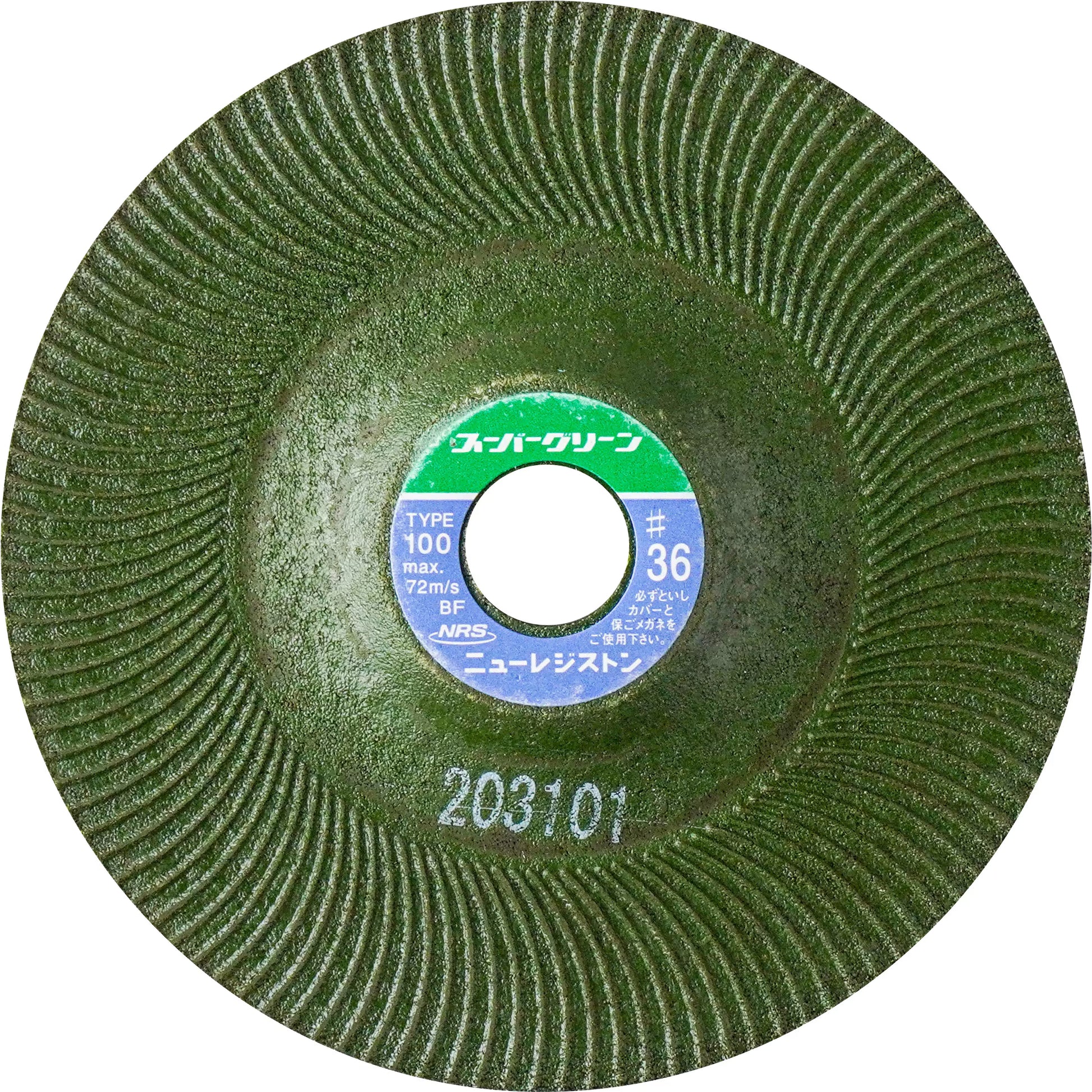 ニューレジストン(NRS)の研削、研磨砥石 スーパーグリーン 砥石外径 100mm #36 25枚/箱です。